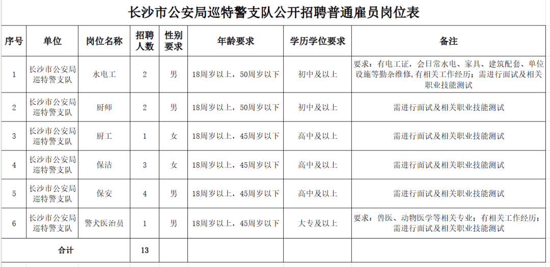 招聘公告通过长沙人才网(http://)公布,公示通过长沙市公安局巡特警支队微信公众号公布。